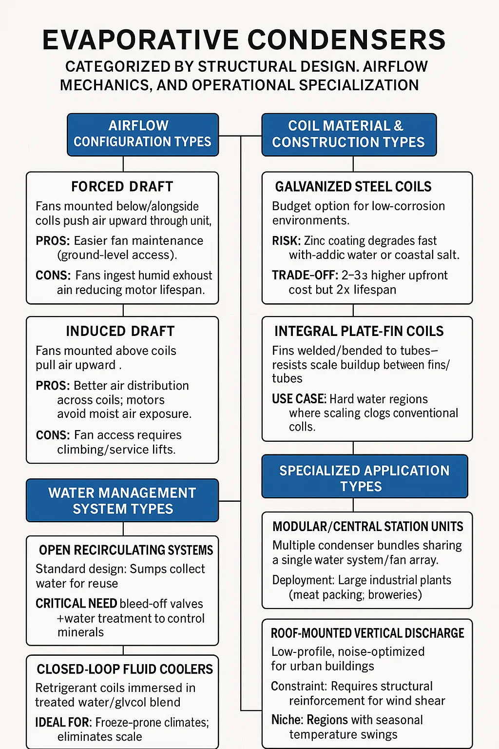 Haihduttavat lauhduttimet Ne luokitellaan rakennesuunnittelun, ilmavirtausmekaniikan ja toiminnan erikoistumisen mukaan. Alla on kenttäkohtainen erittely yleisistä tyypeistä: